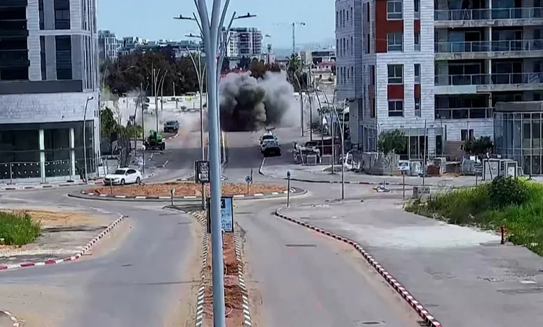Confirmed: The municipality of Or Yehuda released CCTV in which a man is seen walking next to a road when a huge explosion occurs. The clip then shows the man falling and another person rushing to assist seconds later. The municipality said on Monday ET that the man was seriously injured. These elements — the sequence of movement, the explosion, the immediate aid and the municipal statement of serious injury — are established by the released footage and the municipality’s own comment.